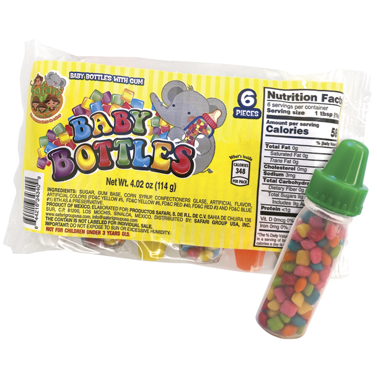 Baby bottles with gum.