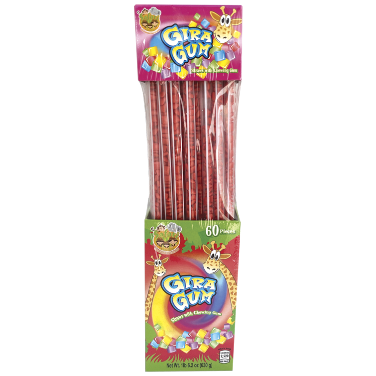 Straws with red chewing gum.